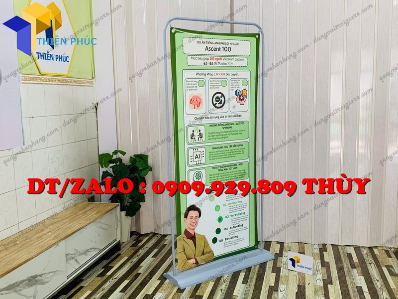 Bảng hiệu khung sắt treo banner giá xưởng là dạng khung sắt cố định hoặc di động, dùng để treo banner quảng cáo (bạt in nội dung).