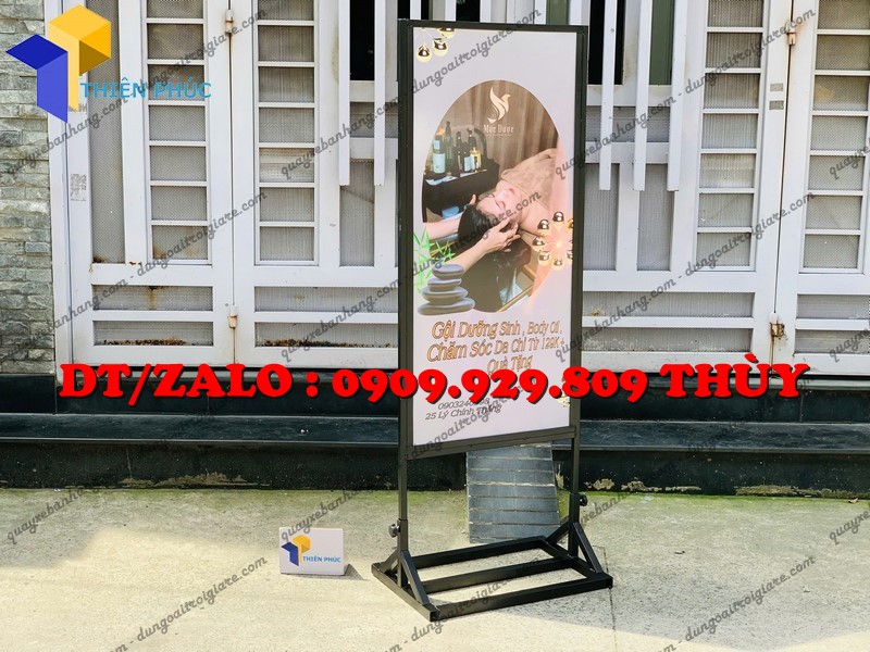 Liên hệ Xưởng Thiên Phúc để đặt bảng hiệu quảng cáo 2 mặt spa – chân đứng chắc chắn, bền đẹp, in logo theo yêu cầu, giao nhanh toàn quốc.