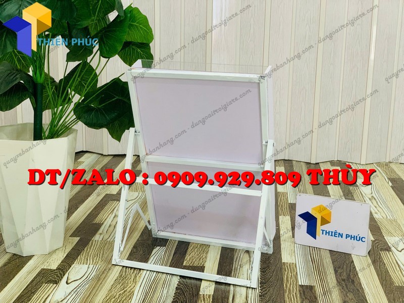 Thiết kế để bàn phù hợp đặt tại quầy lễ tân, booth sampling, gian hàng hội chợ hoặc trung tâm thương mại.