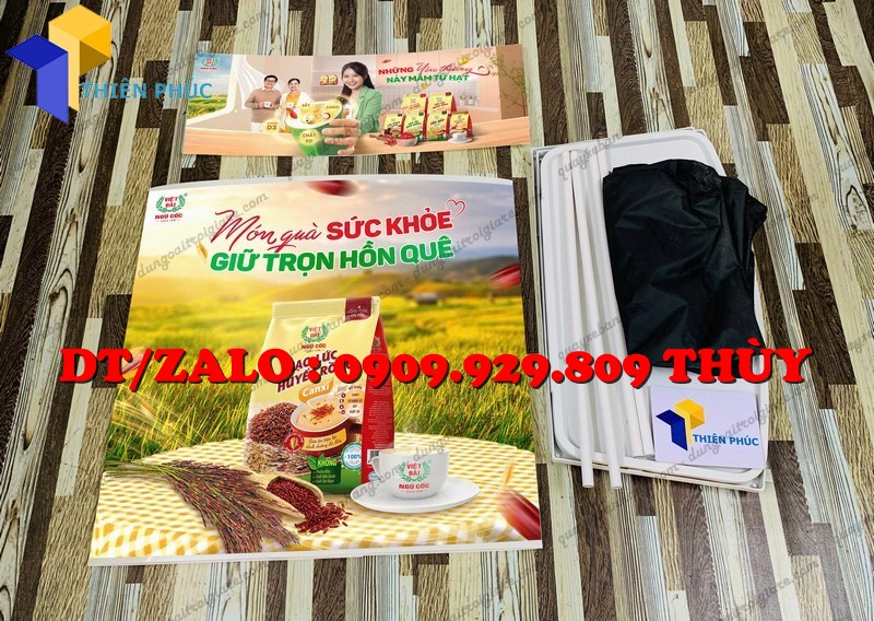+ Phần tấm logo phía trên là 0.3×0.8m chất liệu decal ngoài trời, cắt sát để cán bồi lên bề mặt bàn và tấm logo