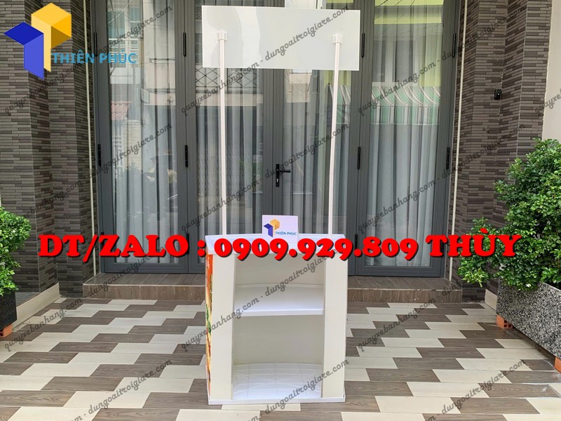 + Hai cây chống nối với logo và phần quầy bằng thép ống sơn trắng