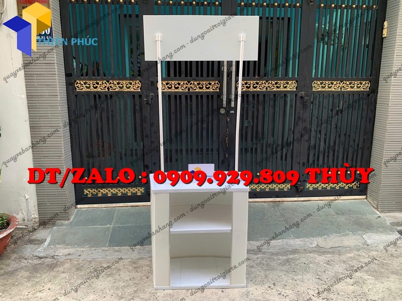 + Hai cây chống nối với logo và phần quầy bằng thép ống sơn trắng