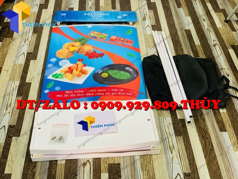 + Phần tấm logo phía trên là 0.3×0.2m chất liệu decal ngoài trời, cắt sát để cán bồi lên bề mặt bàn và tấm logo