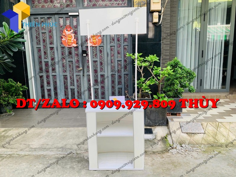 + Hai cây chống nối với logo và phần quầy bằng thép ống sơn trắng