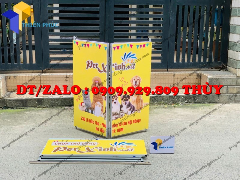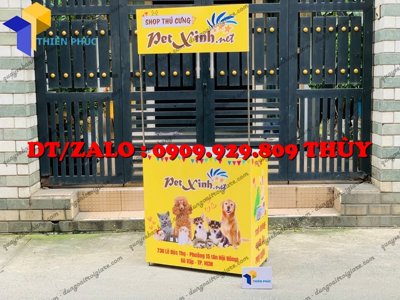Booth sắt quảng cáo bán hàng gấp gọn là lựa chọn lý tưởng để kinh doanh hiệu quả, tiết kiệm chi phí và tạo điểm nhấn thương hiệu cho shop thú cưng hay sự kiện.