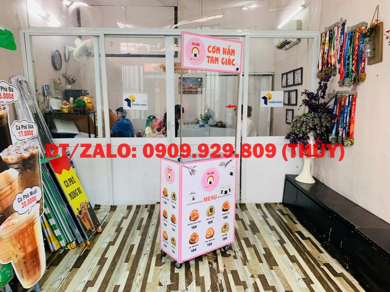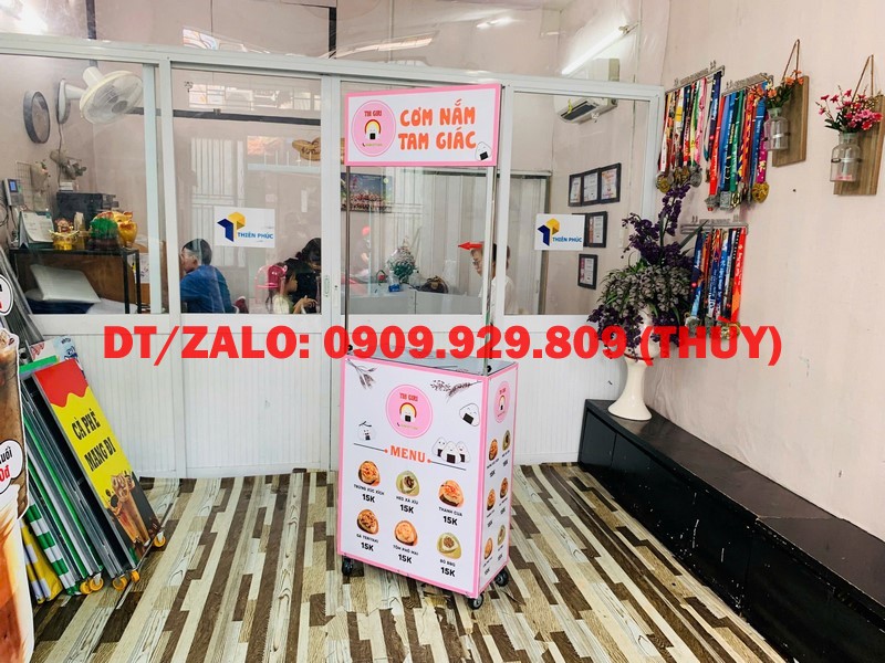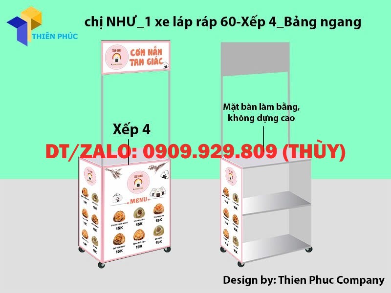 Tại Thiên Phúc có các mẫu xe lắp ráp bán cơm nắm tam giác đẹp với kích thước đa dạng. Khách mua hàng sẽ đặt mua trực tiếp tại xưởng. Sản phẩm không qua phân phối trung gian nên giá bán quầy xe gấp gọn bán cơm nắm tam giác luôn tốt nhất. Mặt khác với những ý tưởng thiết kế của khách hàng, hãy trao đổi trực tiếp với đội ngũ thiết kế để làm nên chiếc xe đẩy di động ưng ý nhất.