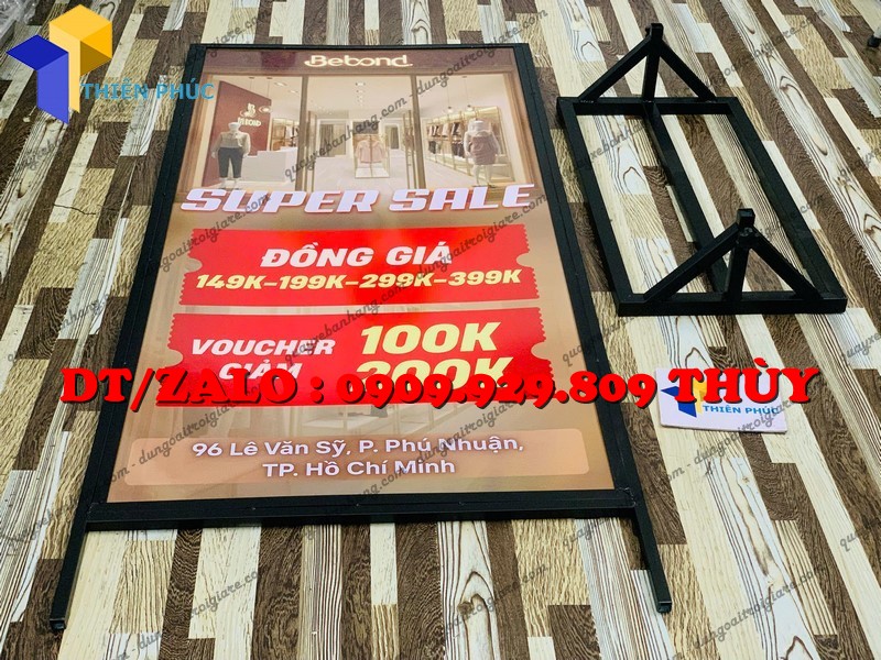 Với thiết kế hai mặt hiển thị, chân chắc chắn và khả năng in ấn tùy chỉnh, sản phẩm giúp thương hiệu nổi bật, thu hút khách hàng và nâng cao hiệu quả quảng bá tại mọi sự kiện hoặc cửa hàng.