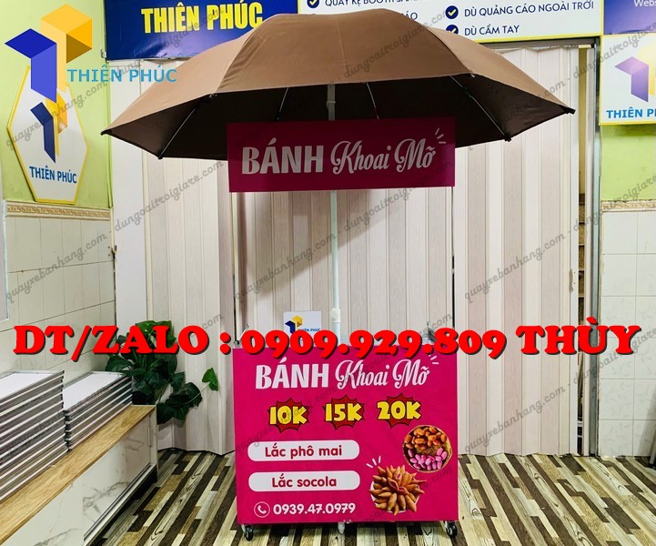 Xe bán bánh khoai mỡ gắn dù gấp gọn là mô hình tối ưu: