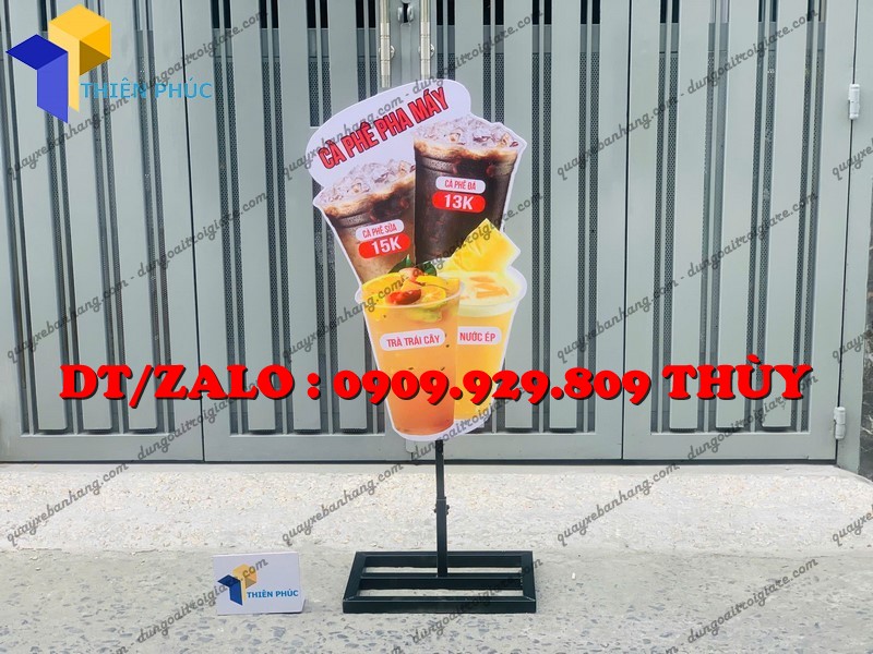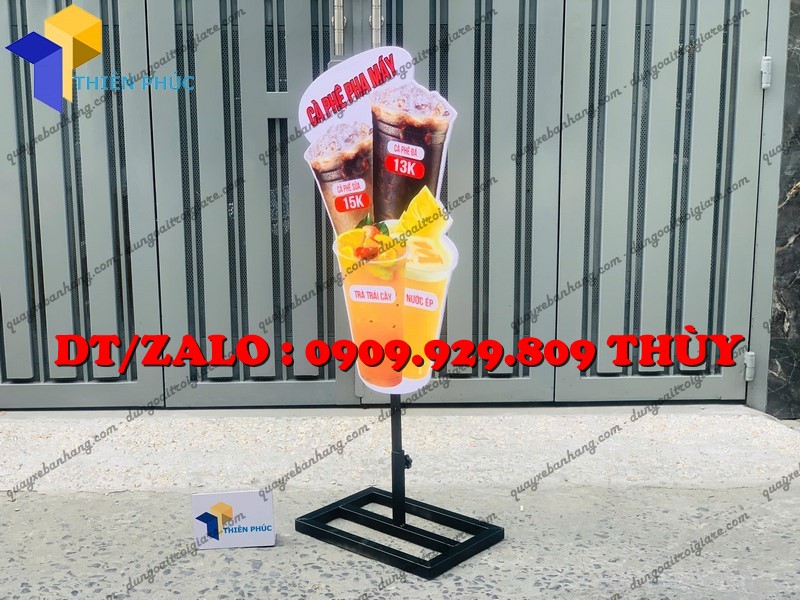 Đây là dạng bảng quảng cáo mô phỏng hình ly nước ép thật, được thu nhỏ hoặc làm vừa tầm trưng bày: