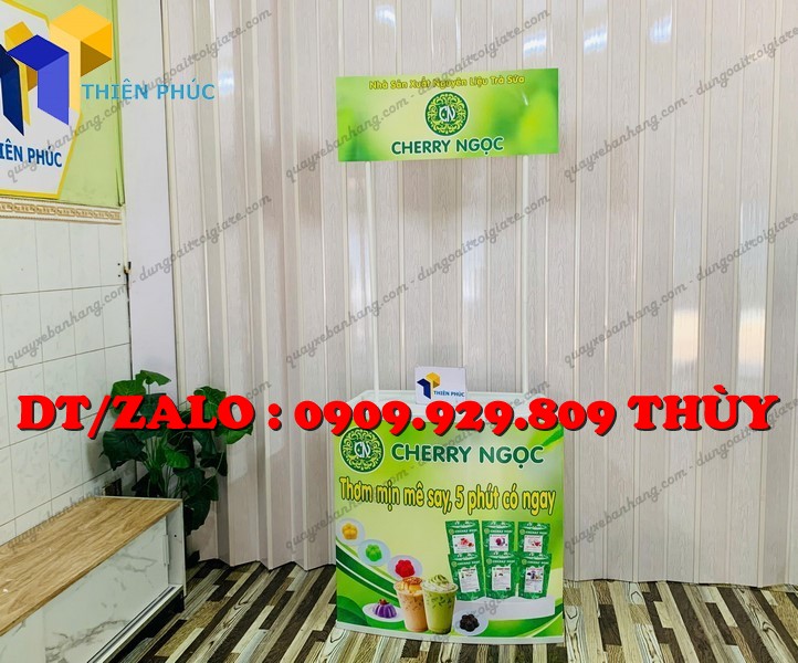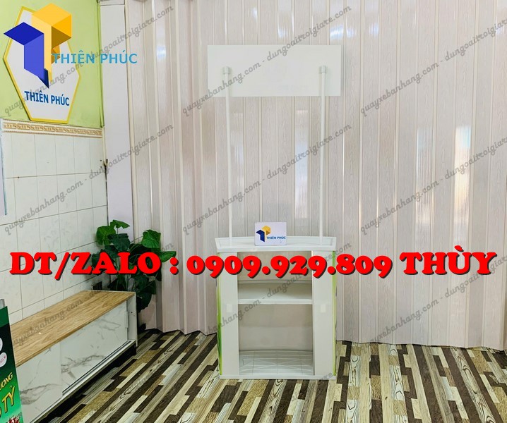 + Hai cây chống nối với logo và phần quầy bằng thép ống sơn trắng