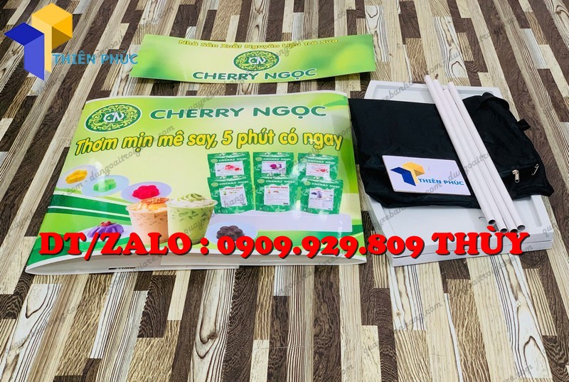 + Phần tấm logo phía trên là 0.3×0.8m chất liệu decal ngoài trời, cắt sát để cán bồi lên bề mặt bàn và tấm logo
