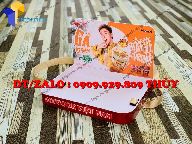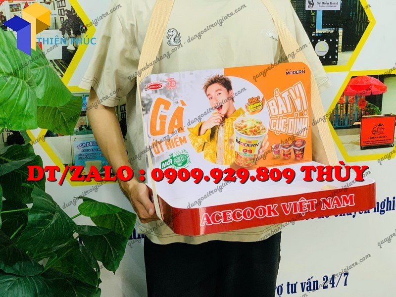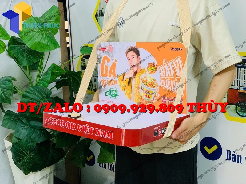 Với thiết kế đeo cổ hoặc đeo vai linh hoạt, người phát mẫu có thể di chuyển khắp sự kiện, hội chợ, siêu thị hay khu phố đông người mà vẫn dễ dàng giới thiệu, mời thử sản phẩm đến khách hàng mục tiêu.
