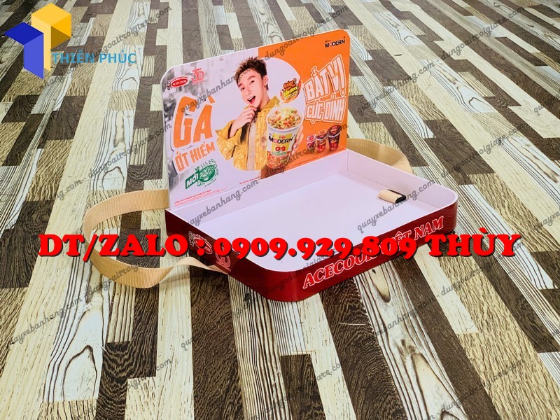 Khay sampling giá rẻ đeo cổ – dụng cụ phát mẫu thử quảng cáo chuyên nghiệp, di động, in logo thương hiệu, giá rẻ tại xưởng Thiên Phúc.