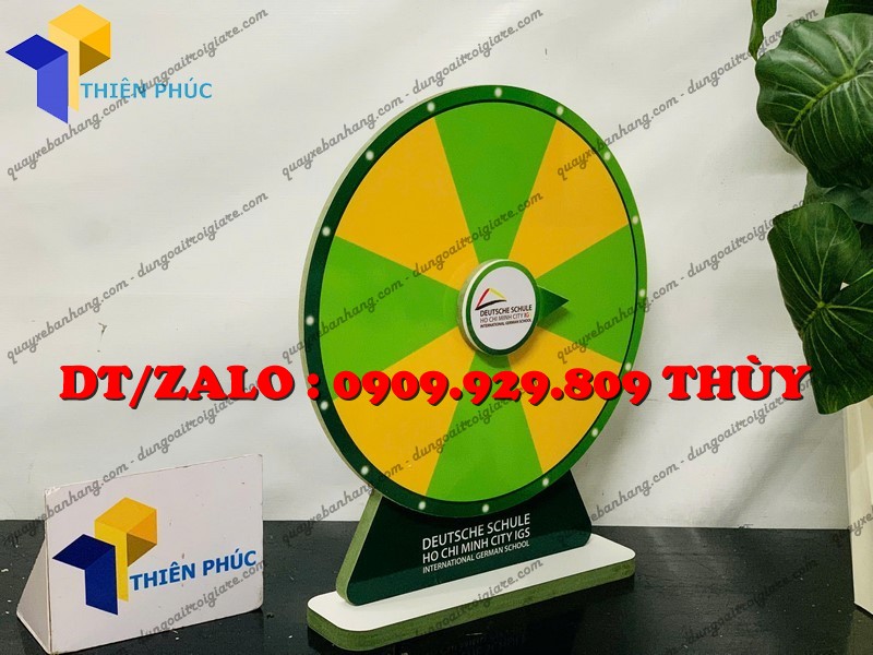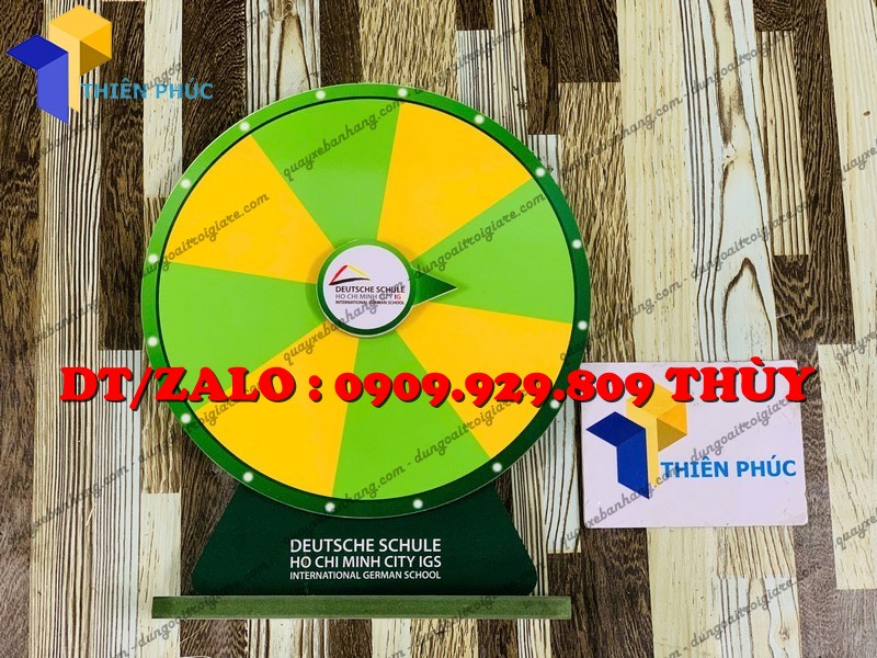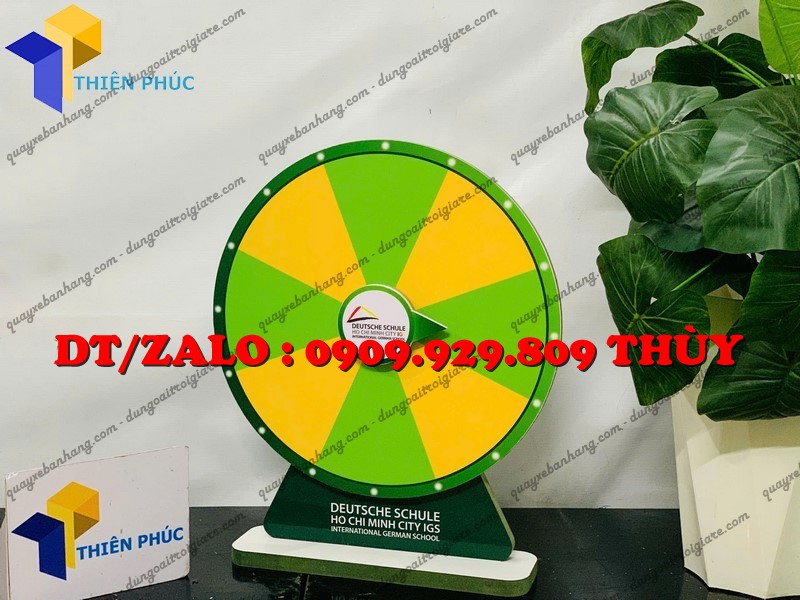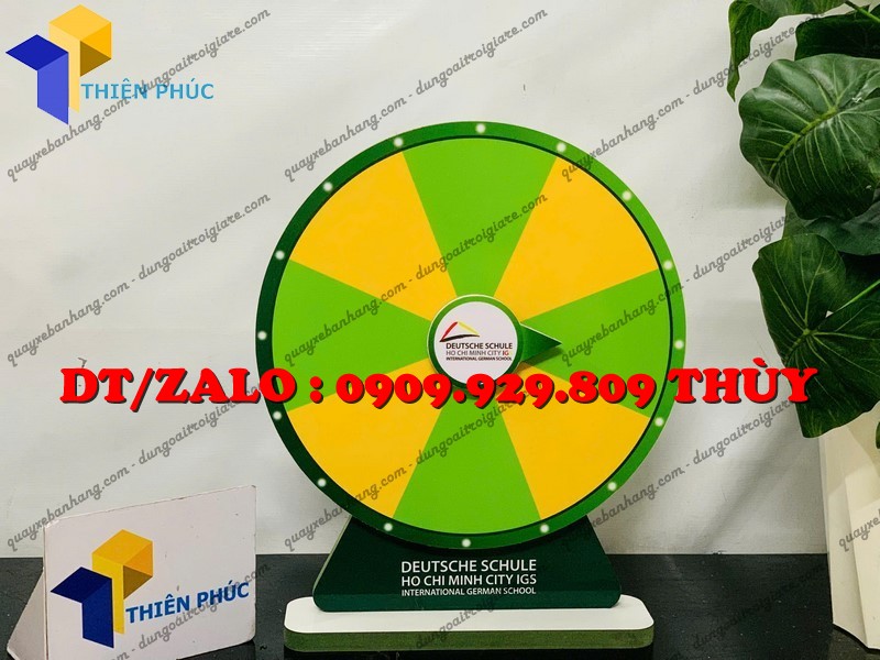 Vòng quay để bàn chân gỗ mini – thiết kế đẹp, quay mượt, hỗ trợ tổ chức mini game tri ân khách hàng, tăng tương tác và thu hút tại sự kiện, giá xưởng Thiên Phúc.