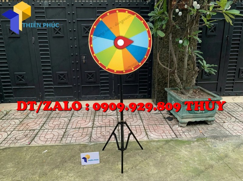 Vòng quay chân xếp trúng thưởng là thiết bị mini game có kết cấu đứng độc lập, phần chân có thể xếp gọn – tháo lắp nhanh. Mặt vòng quay được chia sẵn nhiều ô trống để tự ghi nội dung giải thưởng, dễ dàng thay đổi theo từng chương trình.