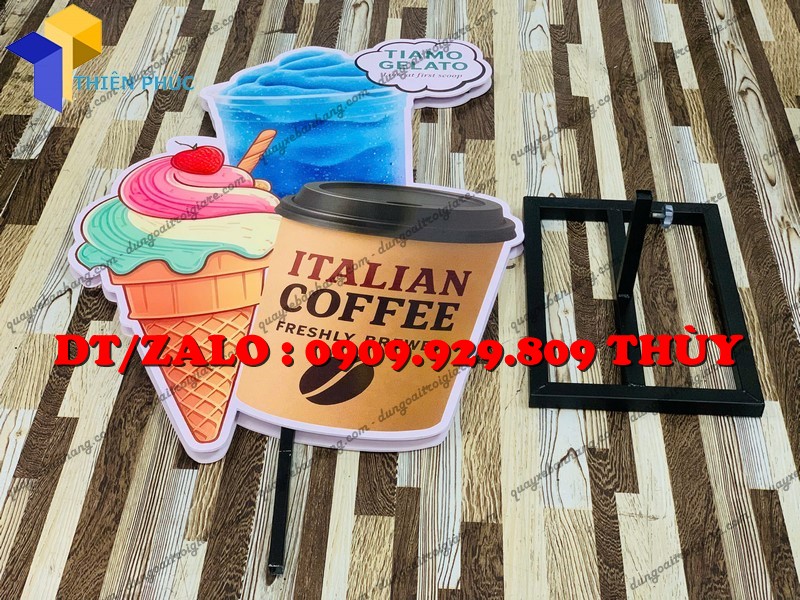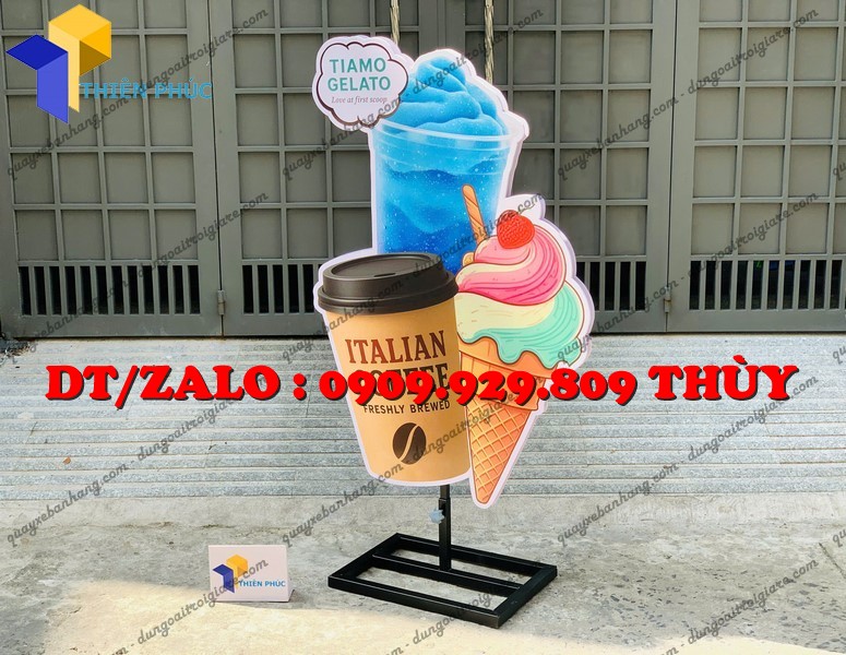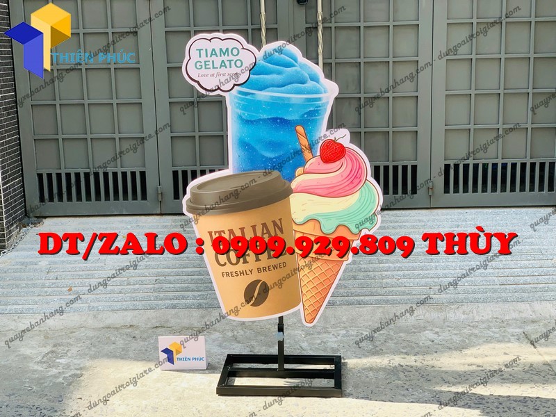 Tên sản phẩm: standee mô hình hình vẽ ly nước cafe - soda - cây kem tươi