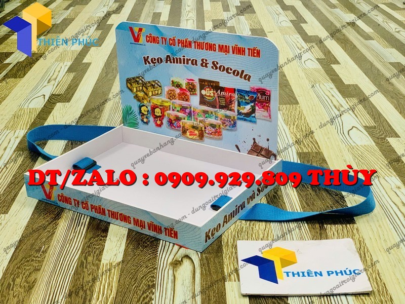 Khay đeo sampling giá rẻ hỗ trợ PG, nhân viên marketing phát mẫu thử, giới thiệu sản phẩm cuối năm chuyên nghiệp. Dụng cụ gọn nhẹ, in logo thương hiệu, mang lại hiệu quả truyền thông cao.