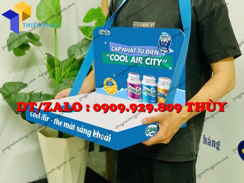 Thiết kế khay phát sampling có dây đeo vai tiện lợi – nhẹ, bền, in logo thương hiệu. Giải pháp quảng bá sản phẩm mới chuyên nghiệp, hiệu quả cao, giá xưởng tận gốc!
