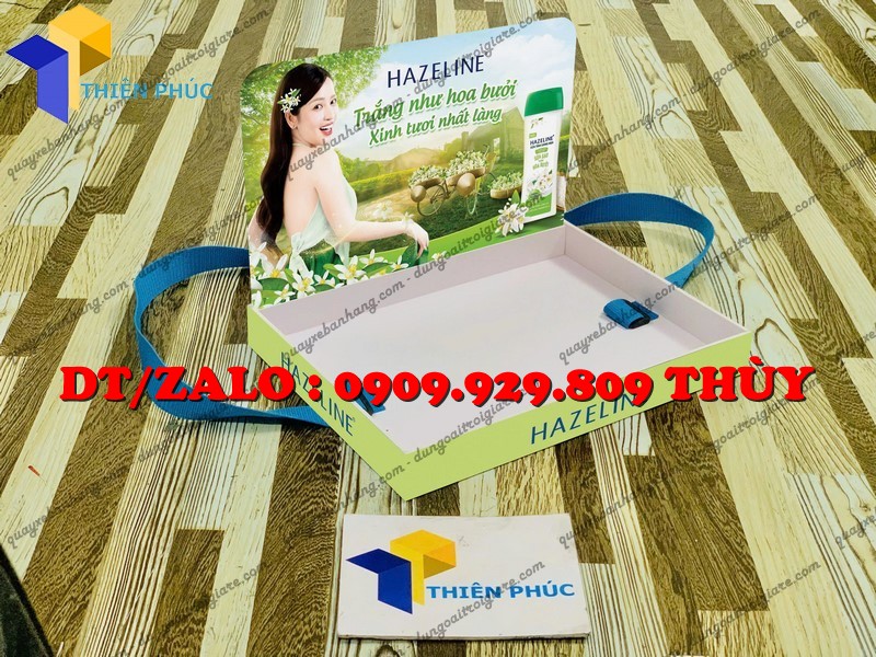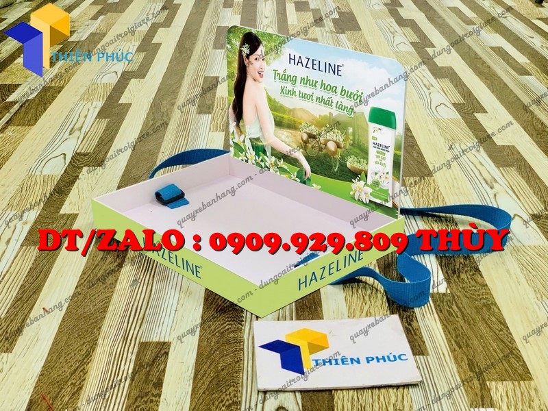Khay phục vụ sự kiện sampling giúp phát mẫu thử nhanh, tăng nhận diện thương hiệu, thiết kế có dây đeo vai tiện lợi, in logo theo yêu cầu, bền đẹp, giá xưởng tận gốc. Phù hợp cho mọi chiến dịch marketing!
