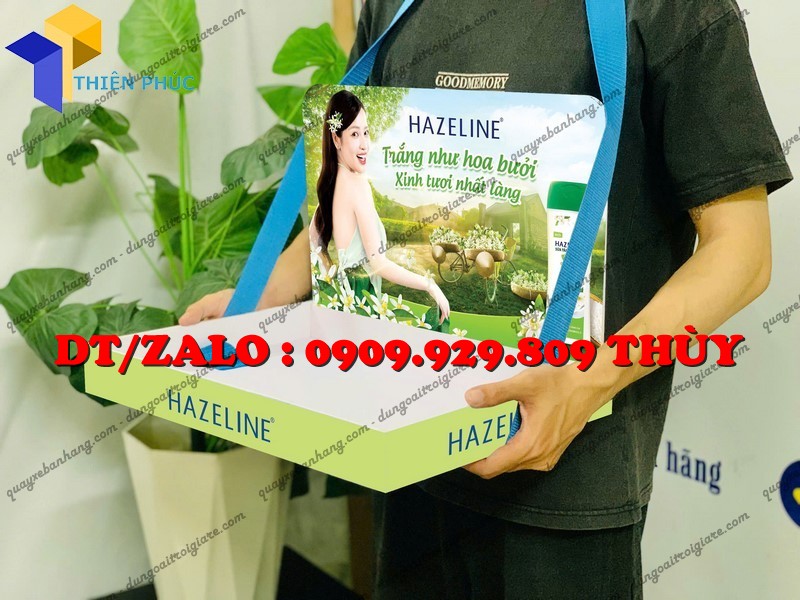 Thiết kế có dây đeo vai chắc chắn, giúp người dùng vừa mang sản phẩm vừa tương tác trực tiếp với khách hàng mà không bị mỏi.
