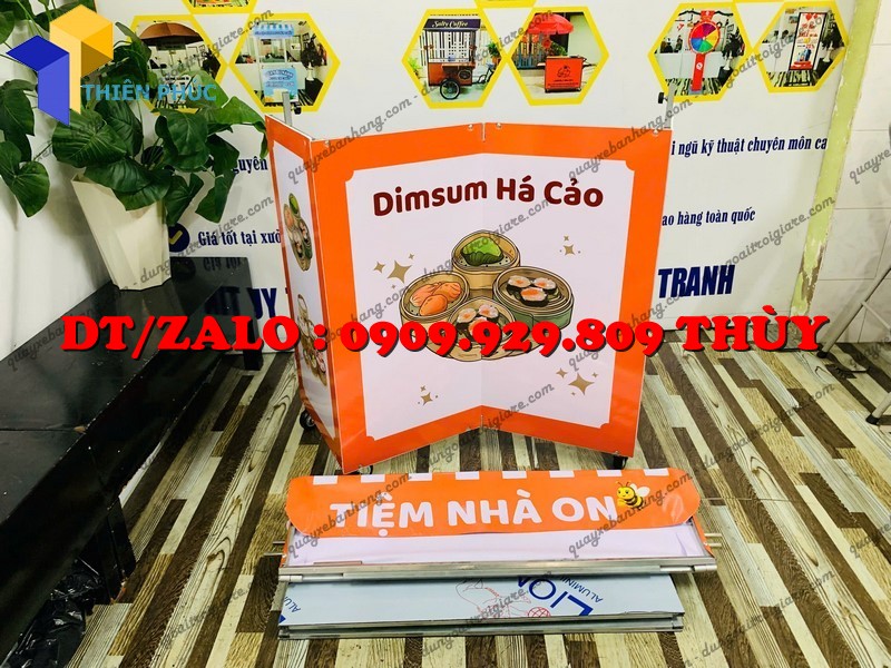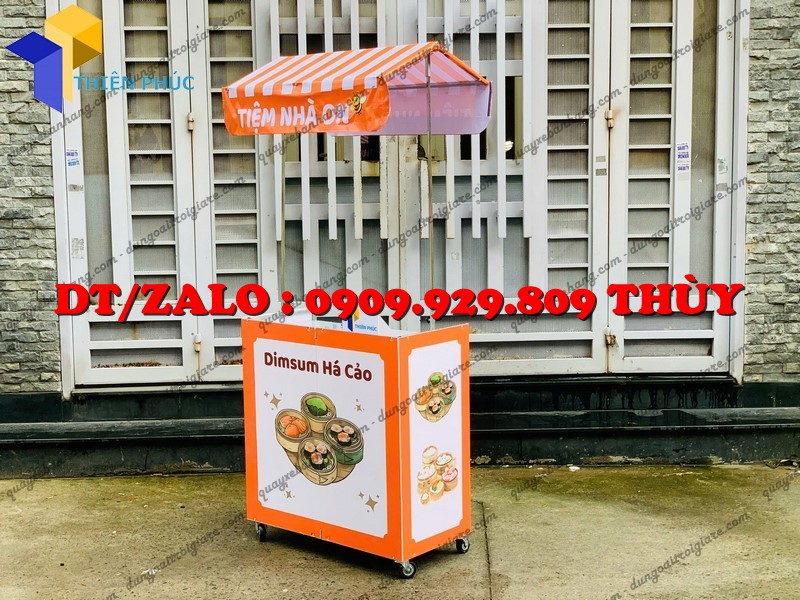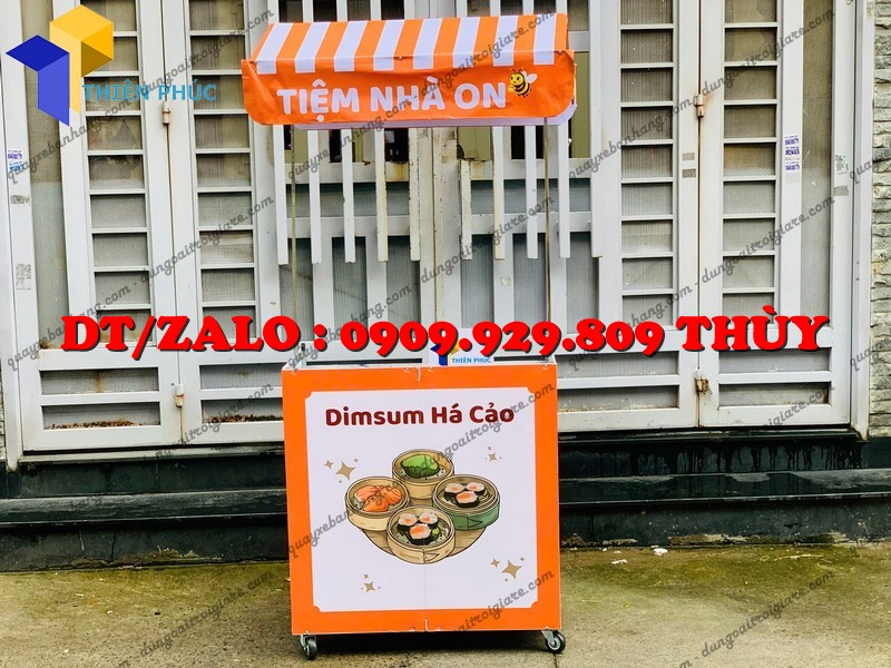 Xe bán dimsum há cảo gấp gọn giá rẻ, thiết kế tiện lợi, di chuyển dễ dàng, phù hợp kinh doanh vỉa hè, sự kiện, hội chợ, thu hút khách hàng hiệu quả.