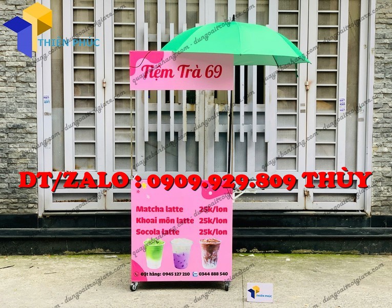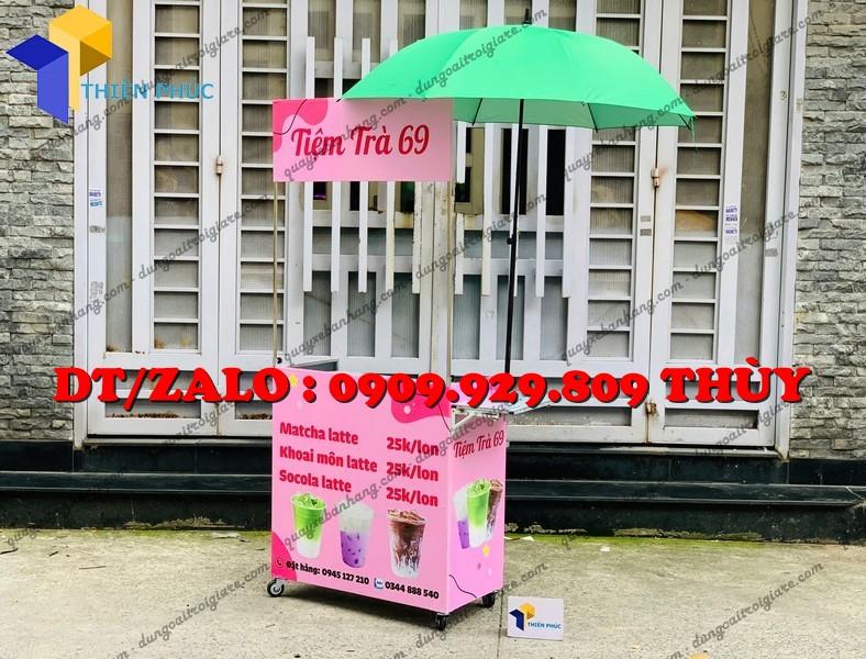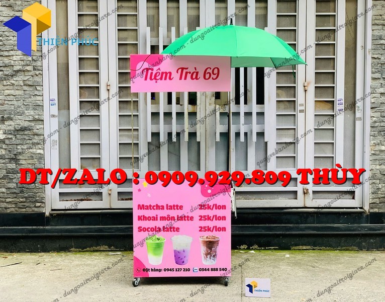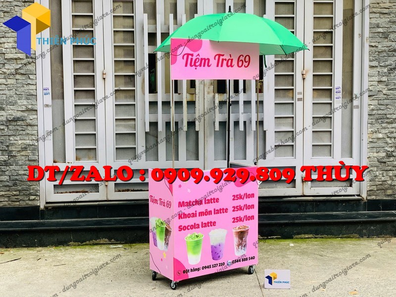 Tên Sản Phẩm: Xe bán nước gắn dù gấp gọn - tủ bán matcha latte xếp gọn