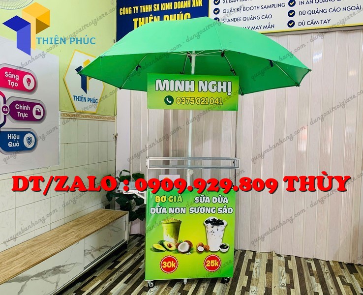 Và xe bán sữa dừa sương sáo gắn dù gấp gọn là lựa chọn thông minh.