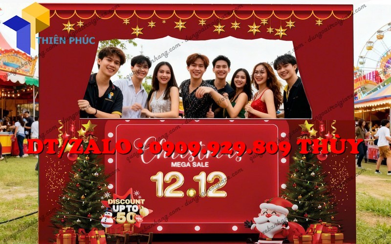 Khung check in lễ hội – backdrop Giáng Sinh giá rẻ là lựa chọn hoàn hảo cho mọi sự kiện săn sale cuối năm. Với thiết kế đẹp, thi công nhanh và chi phí thấp, sản phẩm giúp sự kiện trở nên ấn tượng, chuyên nghiệp và thu hút khách ngay từ lần nhìn đầu tiên.