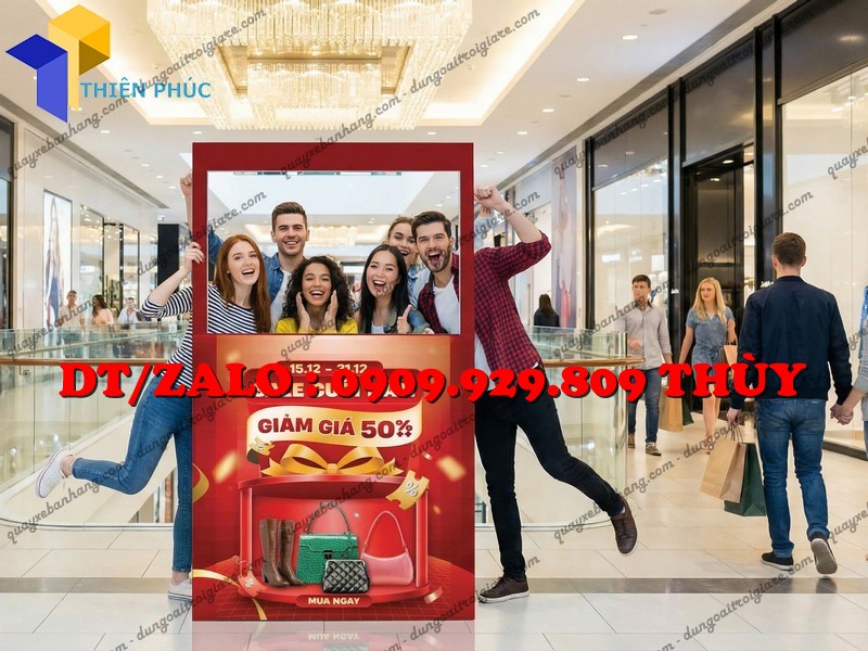 Khung check-in quảng cáo là mô hình dùng để chụp ảnh, thiết kế theo phong cách thương hiệu, kèm thông điệp khuyến mãi cuối năm: