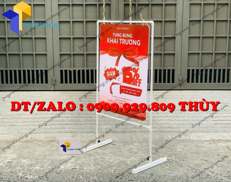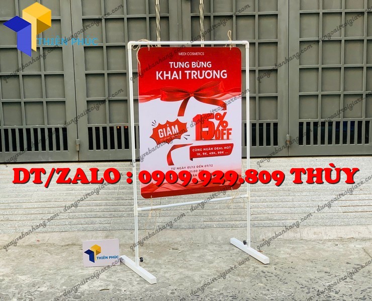 Khung lắp ráp treo poster khai trương là giải pháp quảng cáo đơn giản nhưng cực kỳ hiệu quả cho cửa hàng mới mở, chương trình ưu đãi, sự kiện giới thiệu sản phẩm hoặc các chiến dịch truyền thông ngắn ngày. Với ưu điểm giá rẻ – lắp đặt nhanh – thay poster tiện lợi, sản phẩm giúp truyền tải thông điệp rõ ràng và thu hút người đi đường ngay tức thì.