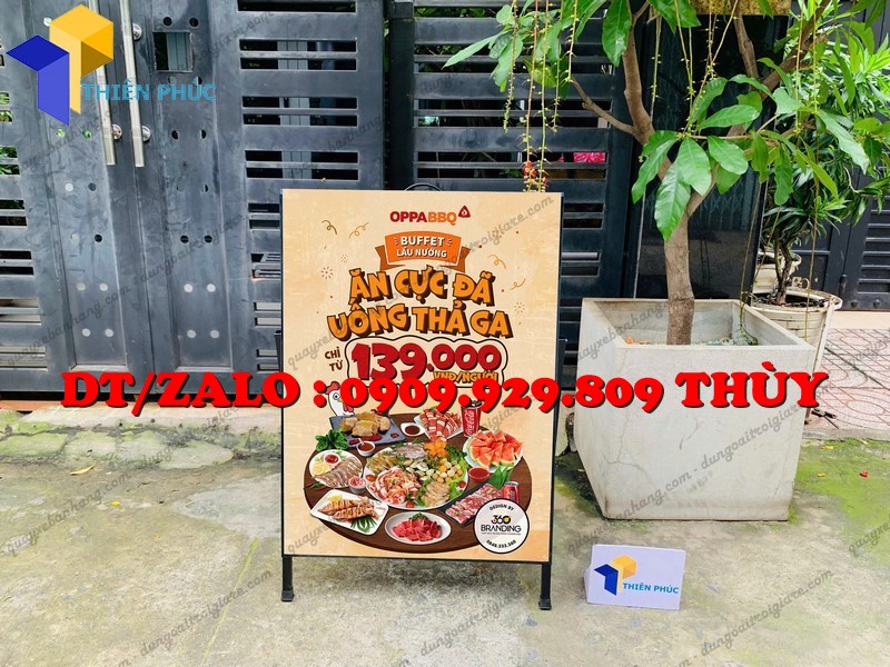 Khung standee sắt chữ A 1 mặt là dòng sản phẩm quảng cáo phổ biến, được sử dụng rộng rãi tại cửa hàng, quán ăn, quán cà phê, showroom, siêu thị và các sự kiện. Với thiết kế đơn giản, chắc chắn và dễ di chuyển, standee chữ A giúp doanh nghiệp truyền tải thông điệp quảng cáo một cách trực quan, hiệu quả mà không tốn nhiều chi phí.