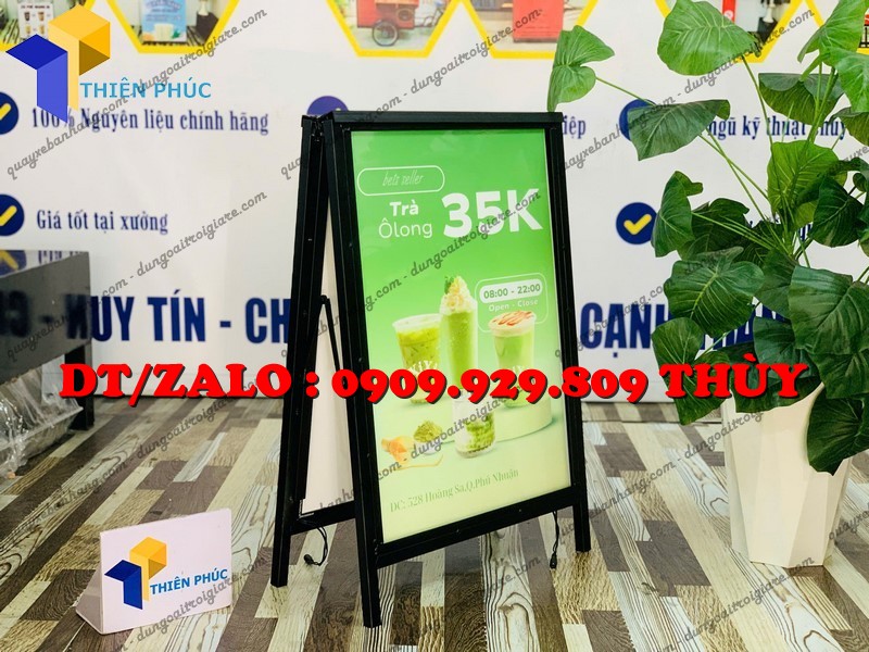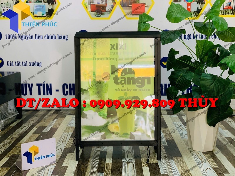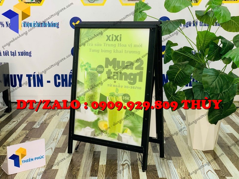Khung tranh điện chữ A 2 mặt siêu mỏng, siêu sáng với ánh sáng LED lung linh giúp quảng cáo nổi bật cả ngày lẫn đêm – lựa chọn hoàn hảo cho quán café, spa, showroom, nhà hàng.