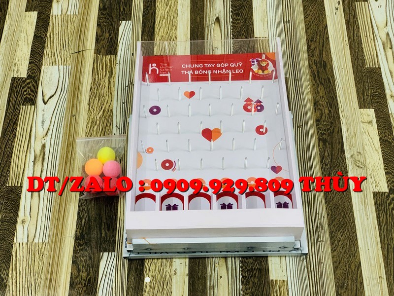 Một khung mini thả bóng may mắn ziczac đặt trên bàn có thể khiến khách:
