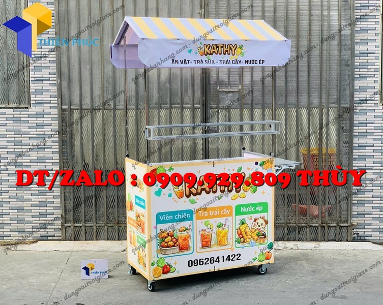Tên Sản Phẩm: quầy bán ăn vặt nước giải khát xếp gọn : cá viên chiên - trà sữa - nước ép - trà trái cây