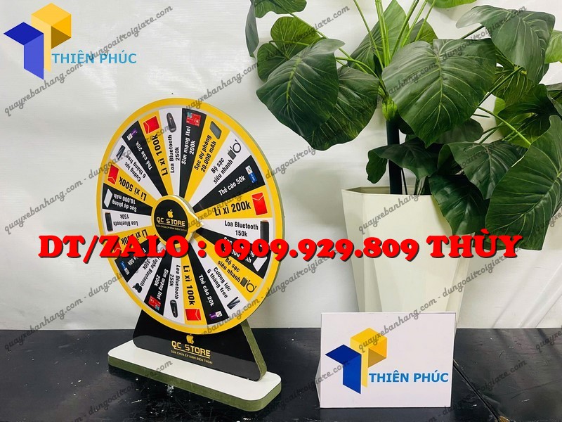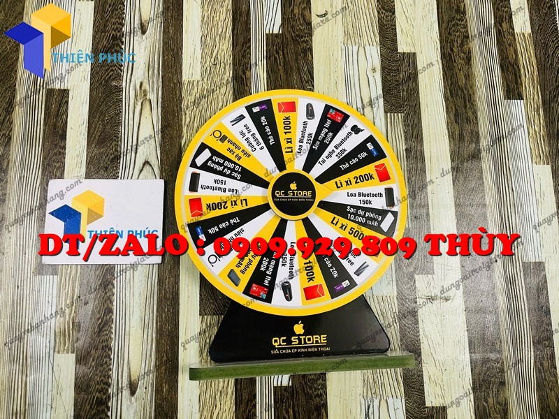 Vòng quay random gỗ để bàn mini game sự kiện, thiết kế bền đẹp, xoay mượt, in logo theo yêu cầu. giải pháp tổ chức minigame chuyên nghiệp cho doanh nghiệp và cửa hàng.