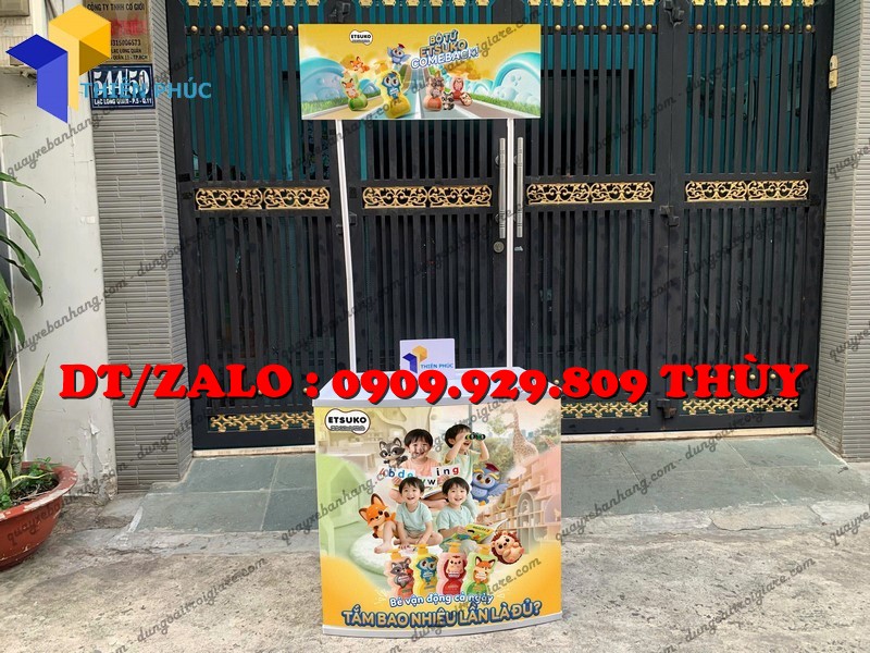 + Hai cây chống nối với logo và phần quầy bằng thép ống sơn trắng