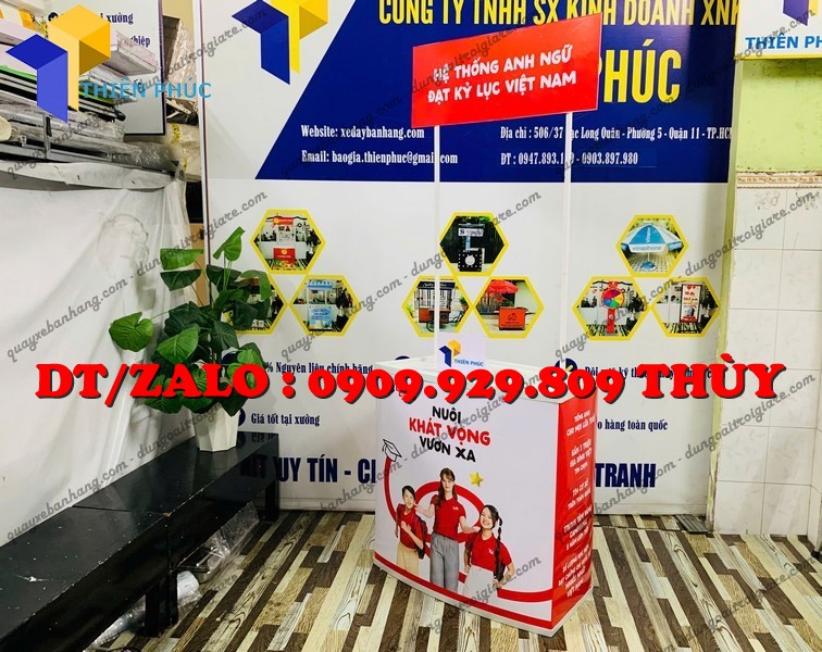 + Hai cây chống nối với logo và phần quầy bằng thép ống sơn trắng