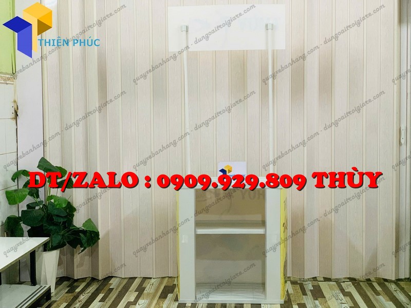 + Hai cây chống nối với logo và phần quầy bằng thép ống sơn trắng