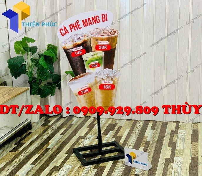 Standee mô hình ly cafe die cut là dạng bảng quảng cáo được cắt theo hình ly nước (cafe, trà sữa, sinh tố…), tạo hiệu ứng sinh động và nổi bật hơn bảng phẳng thông thường.