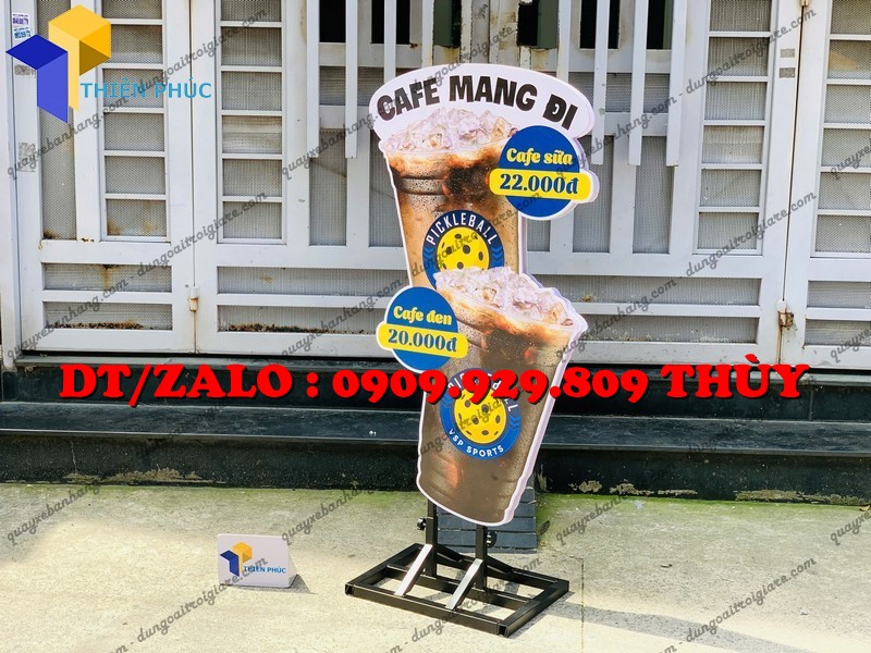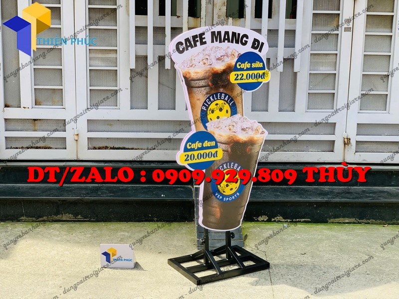 Liên hệ Xưởng Thiên Phúc để thiết kế standee mô hình quảng cáo ly cà phê độc quyền, in logo thương hiệu, kích thước theo yêu cầu – đẹp, bền, giá xưởng, giao nhanh toàn quốc.