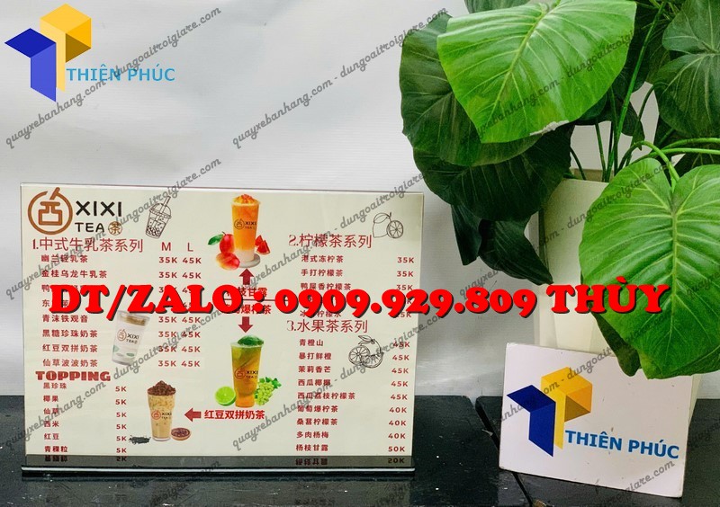 Bảng menu mica để bàn là công cụ cần thiết giúp quán nước, quán cafe nâng tầm trải nghiệm khách hàng. Với thiết kế sang trọng, dễ đọc, tùy chỉnh in logo, sản phẩm giúp thu hút khách, tăng doanh số và nâng cao hình ảnh thương hiệu.