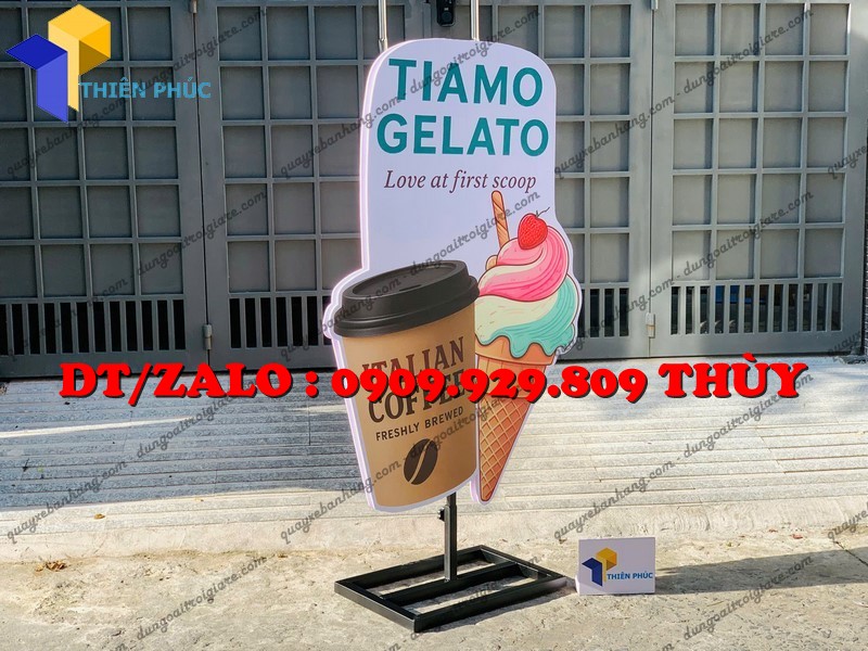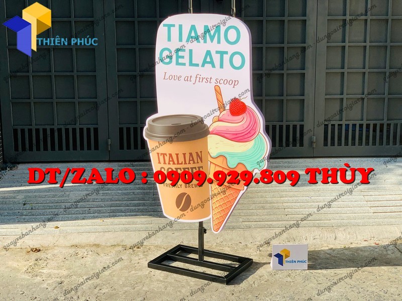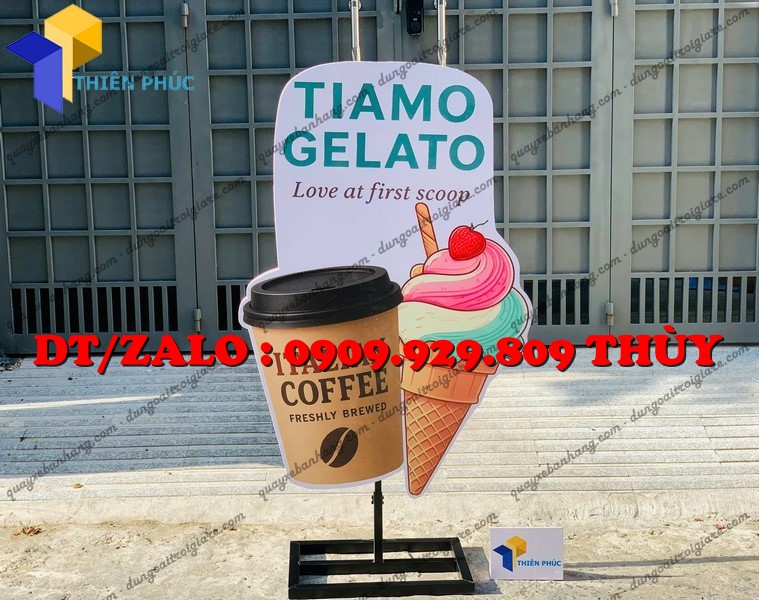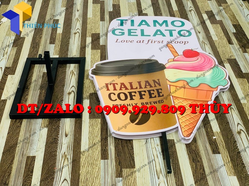 Bảng được thiết kế cắt bế theo hình, in màu chuẩn nét, giúp khách nhìn vào là biết ngay bạn đang bán gì.