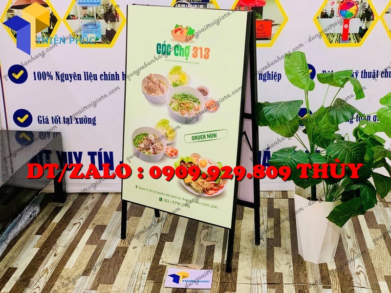 Liên hệ ngay Thiên Phúc để đặt làm khung xếp chữ A 2 mặt quảng cáo, giao nhanh trong ngày, đáp ứng mọi nhu cầu trưng bày và quảng bá sản phẩm của bạn.