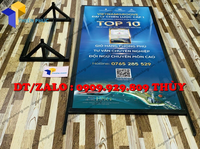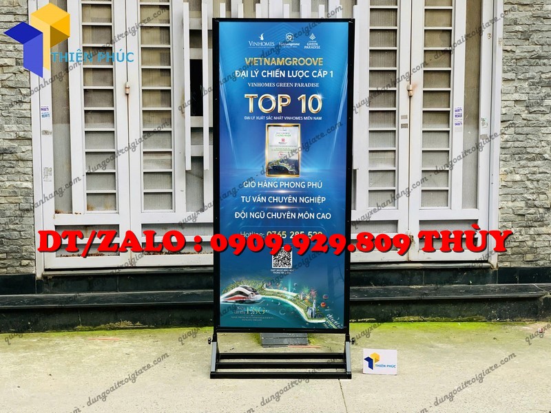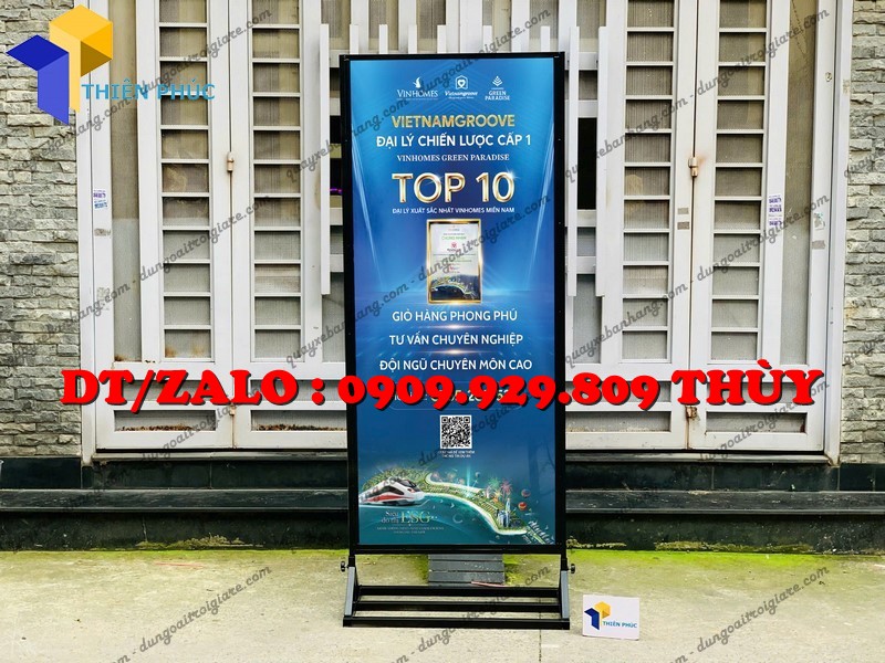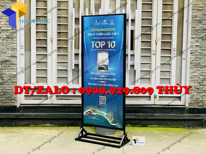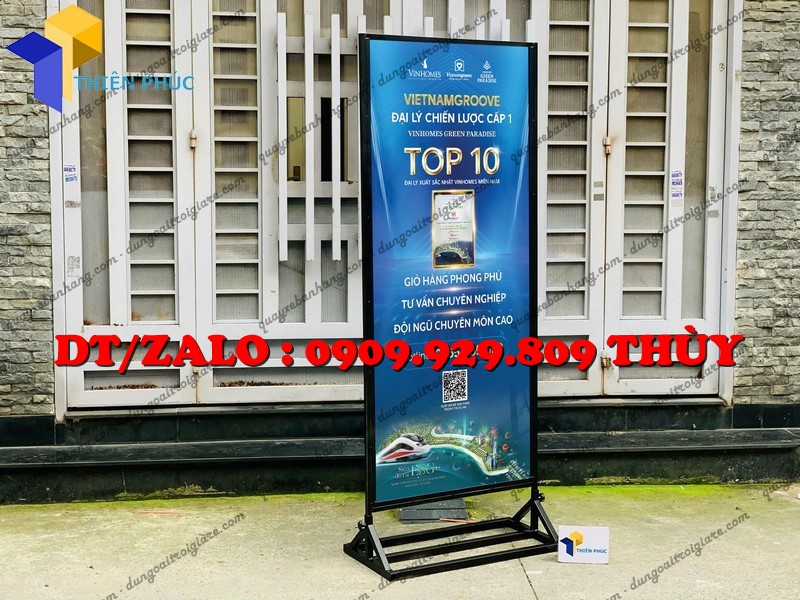Standee quảng cáo chịu gió 2 mặt bền đẹp, dễ lắp đặt, dùng cho sự kiện, cửa hàng, siêu thị – giúp tăng hiệu quả trưng bày và thu hút khách hàng.