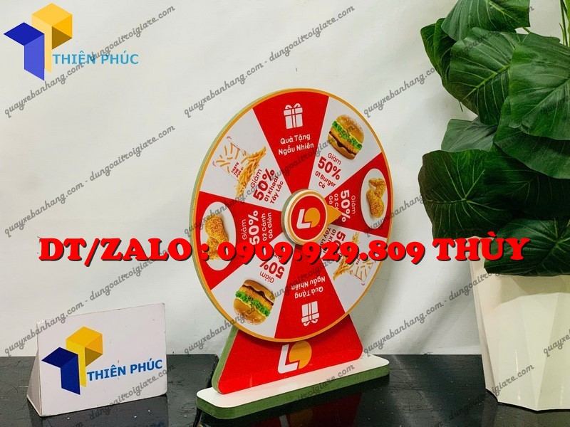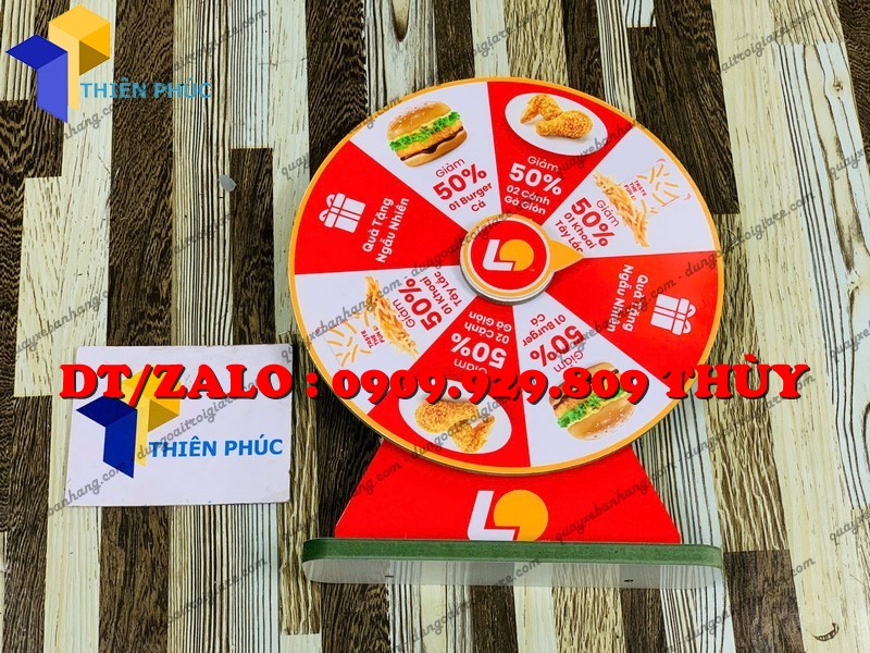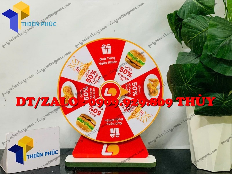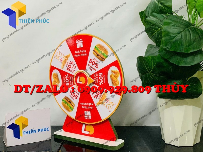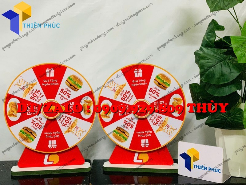 Thiết kế – trang trí vòng quay bốc thăm mini để bàn đẹp, nhỏ gọn, in logo thương hiệu, giúp sự kiện nổi bật, thu hút khách hàng, tạo tương tác cao.