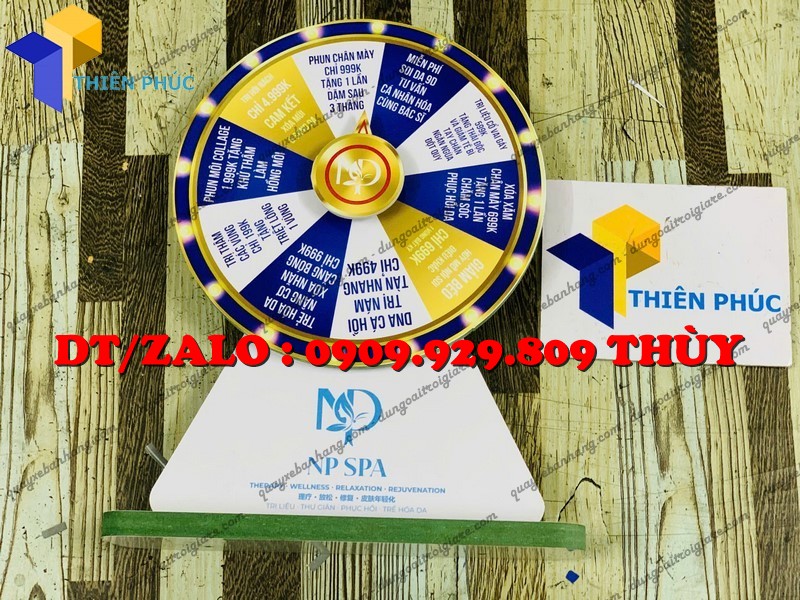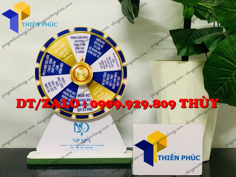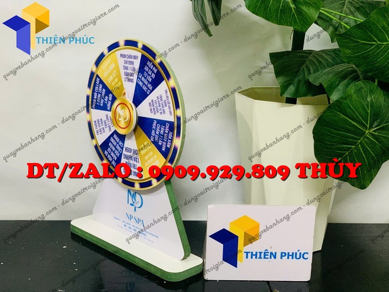 Vòng quay trúng thưởng mini giá rẻ có thể đặt trên bàn, quầy trưng bày hoặc khu vực sự kiện mà không chiếm nhiều diện tích, dễ dàng di chuyển và bố trí linh hoạt theo nhu cầu.
