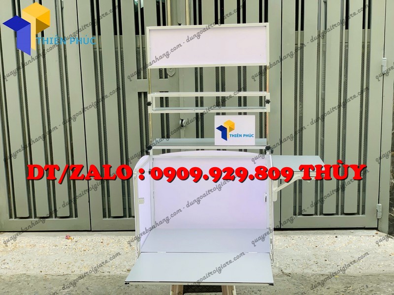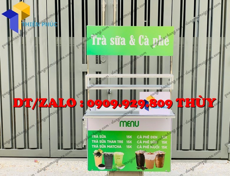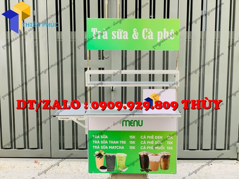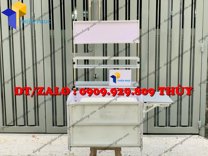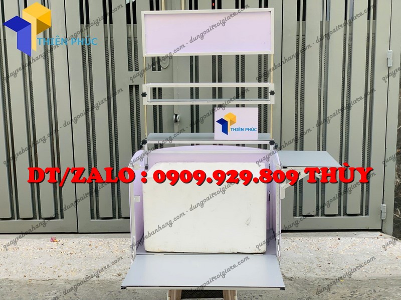Đây là mẫu thùng bán hàng lưu động được thiết kế gắn phía sau hoặc hai bên xe máy, dùng để bán cafe, trà sữa, trà trái cây, nước giải khát mang đi.