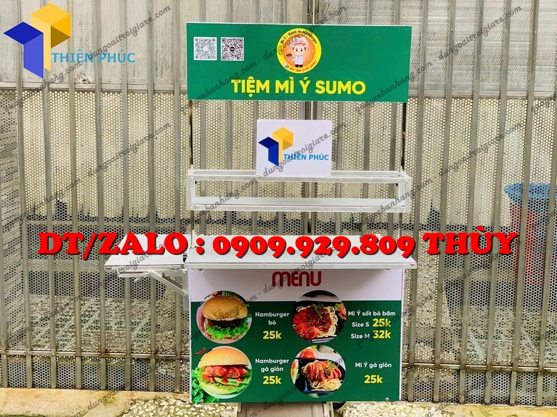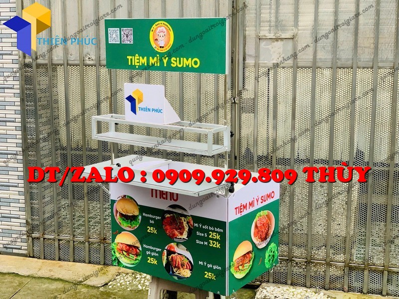 Xưởng Thiên Phúc chuyên thiết kế – sản xuất thùng bán mì Ý, thùng bán nước giải khát, cà phê, thức ăn nhanh, đồ ăn vặt, gắn trực tiếp trên xe máy.