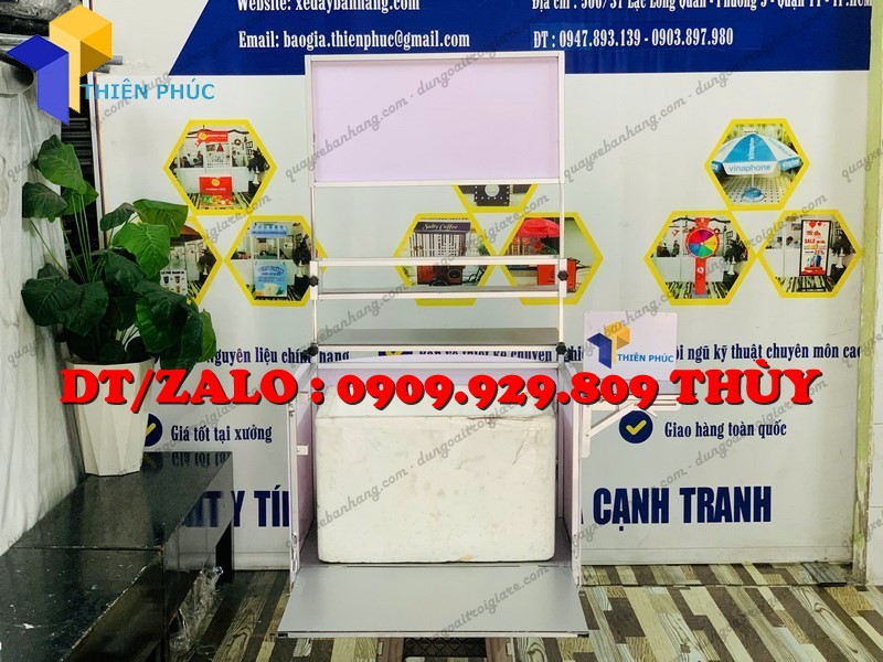 Đây là dạng thùng bán nước lưu động được thiết kế gọn nhẹ, lắp trực tiếp lên baga xe máy. Bên trong thùng bố trí không gian hợp lý để: