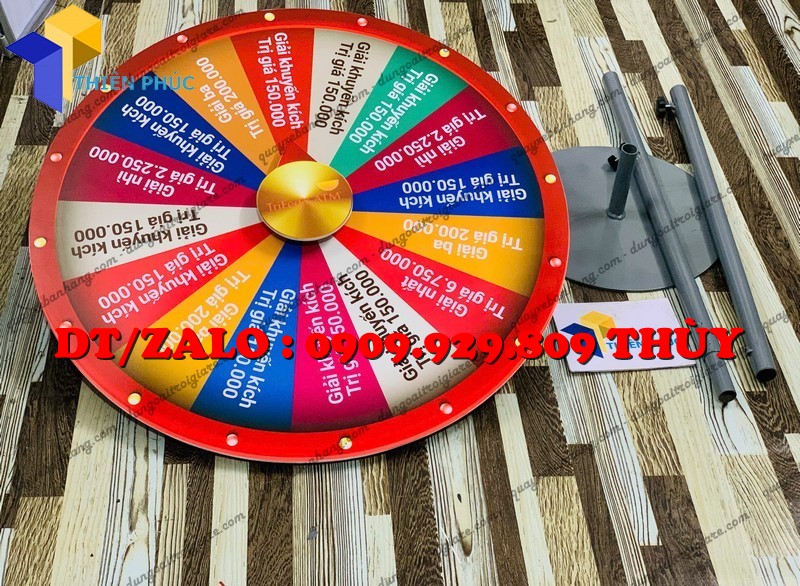 Liên hệ Xưởng Thiên Phúc để đặt vòng quay trúng thưởng chân đứng lắp ráp – lựa chọn marketing hiệu quả số 1 cho sự kiện của bạn!